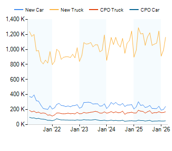 March 2026 New Vehicle Unit Sales, SAAR, Inventory CPO Sales and Incentives Spending results are now available for query.