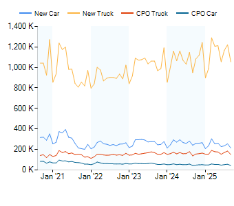 September 2025 U.S. Market New Vehicles Sales, Stock, SAAR, CPO Sales and Incentives Spending results are available for query. All results are now finalized for September.